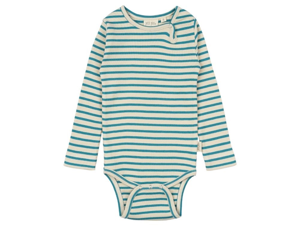 Mere information om Petit Piao body turkis/mørk råhvid stribet