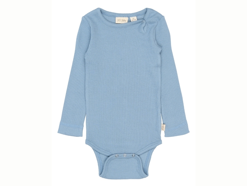Body i lyseblå nuance (Infinity) fra Petit Piao i deres klassiske ribkvalitet.