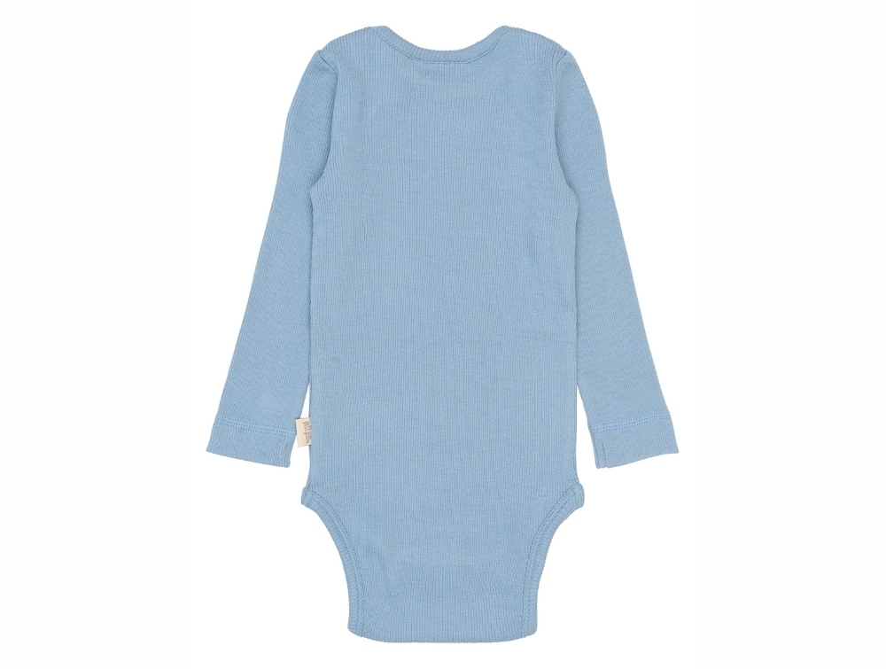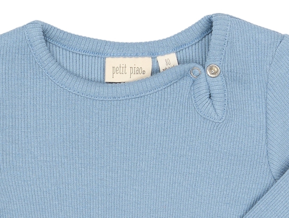 Petit Piao langærmet bodystocking i lyseblå ribkvalitet med trykknapper