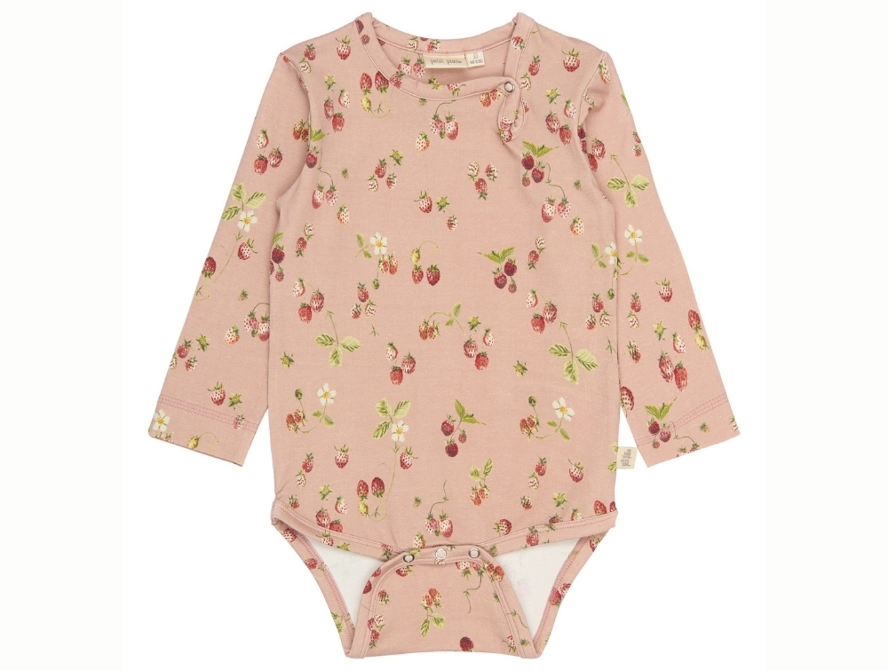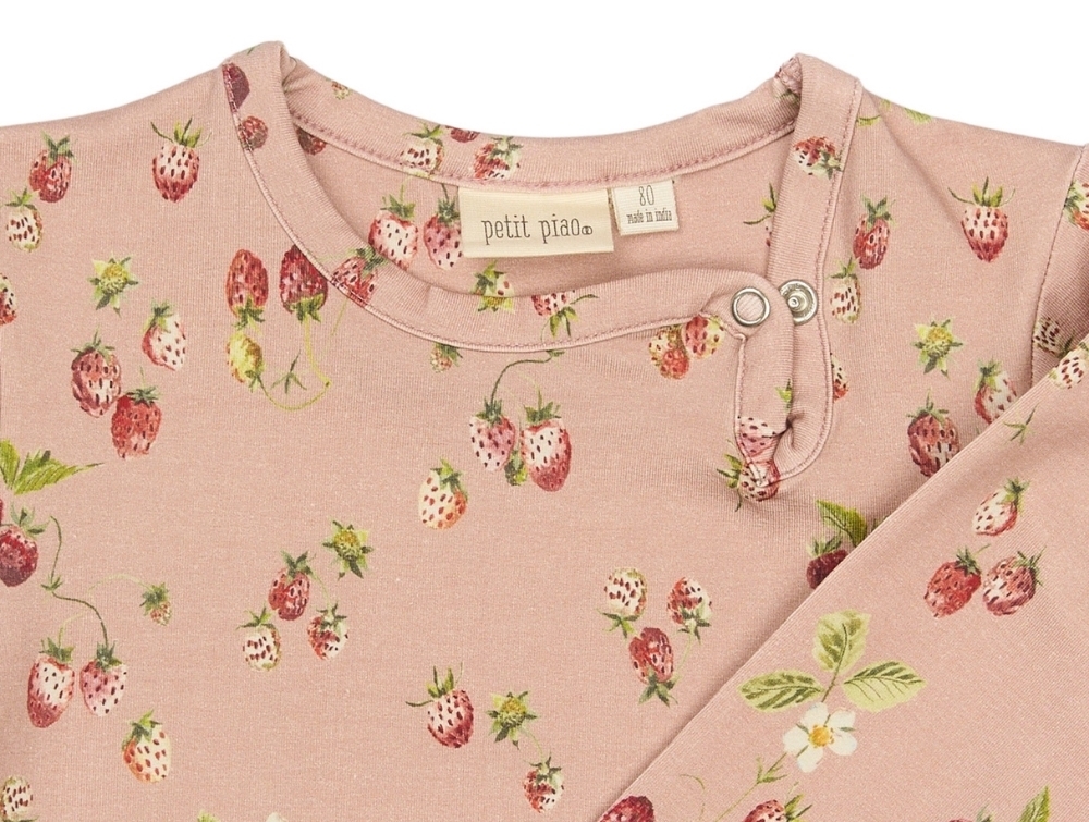 Petit Piao body misty rose med jordbærprint