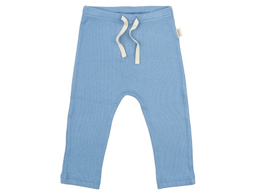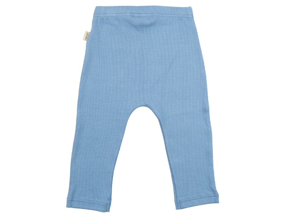 Bløde ribbukser fra Petit Piao i en smuk lys blå nuance. Bukserne er strækbare og fremstillet af en behagelig blanding af økologisk bomuld og modal, der sikrer en blød og fleksibel pasform.