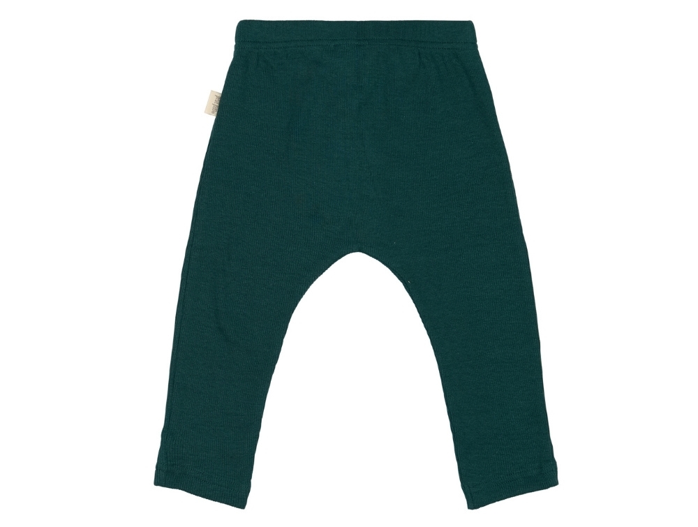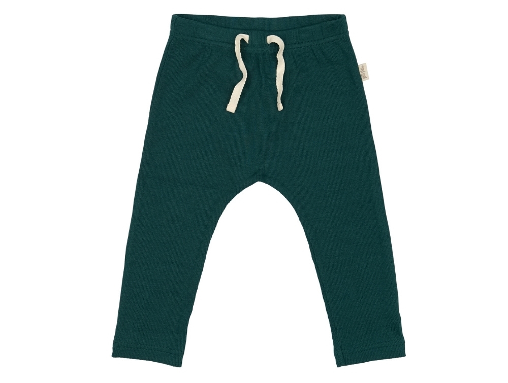 Bukser i mørkegrøn nuance (dark sea) fra Petit Piao. Modellen har ribstruktur, elastik og bindebånd i taljen.