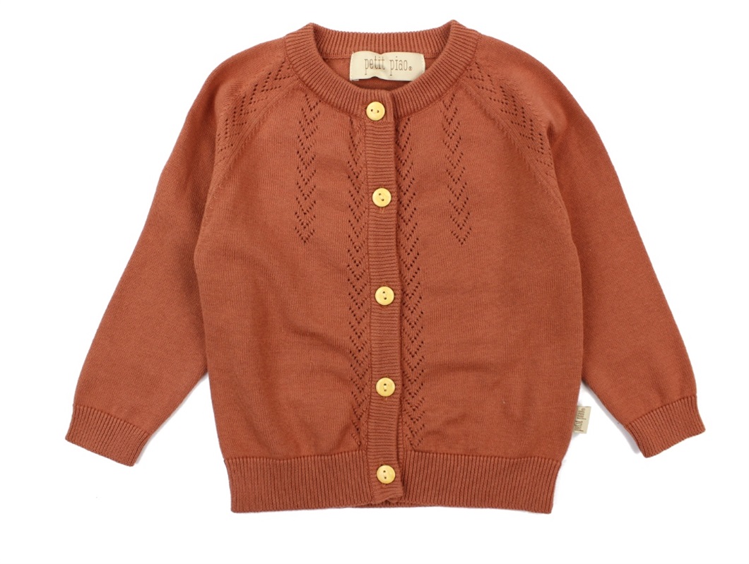 Strikcardigan i farven copper brown med hulmønster fra Petit Piao.