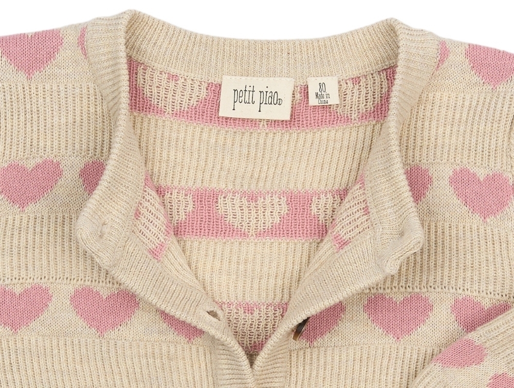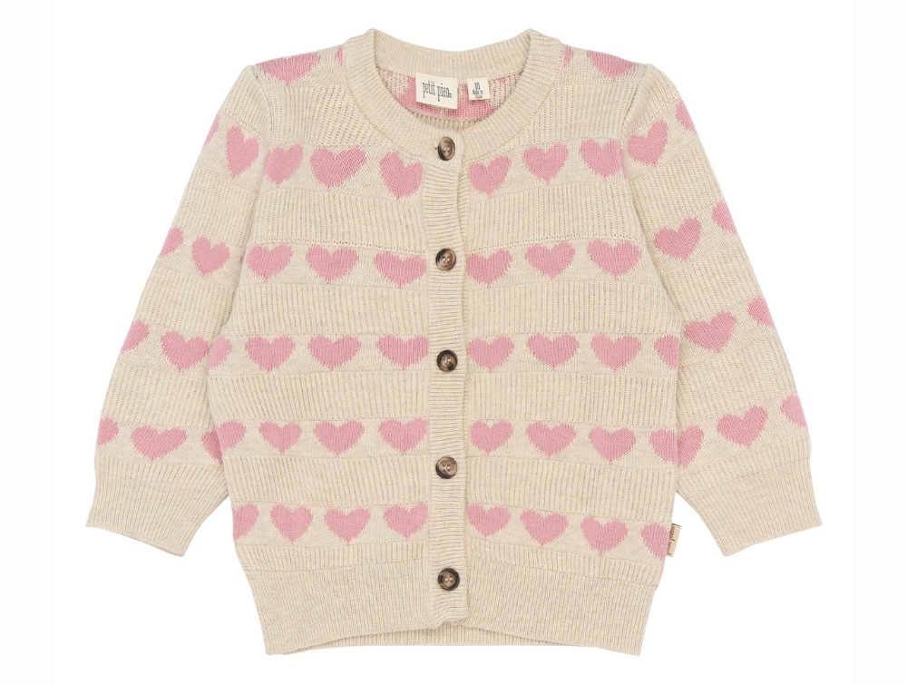 Petit Piao cardigan i råhvid med rosa hjerter