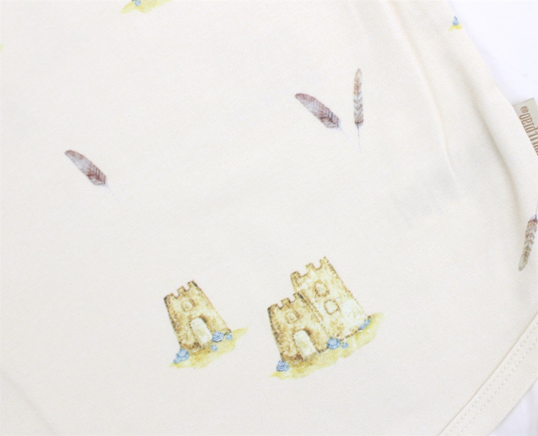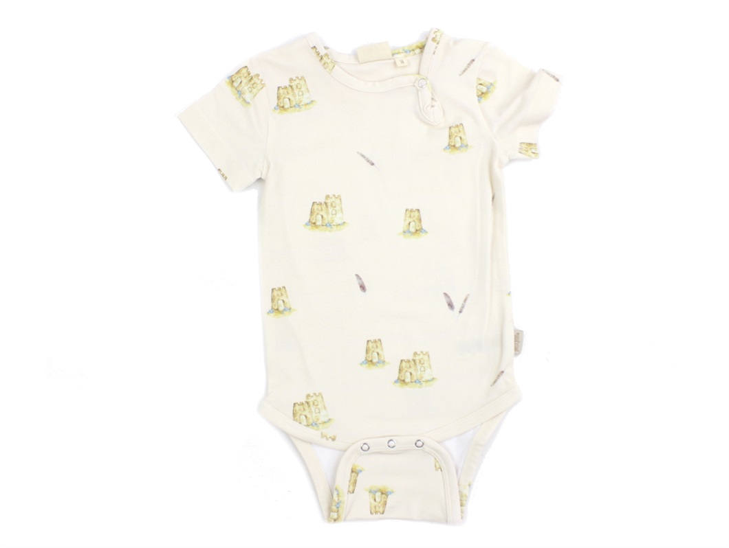 Body i økologisk bomuld med print af sandslotte fra Petit Piao.