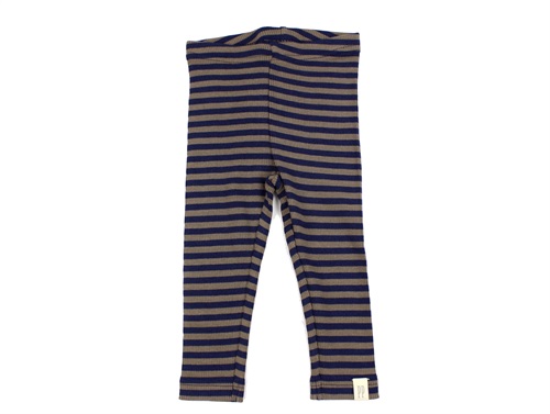 Stribede legging i farverne chocolate brown og indigo plum fra Petit Piao.