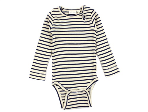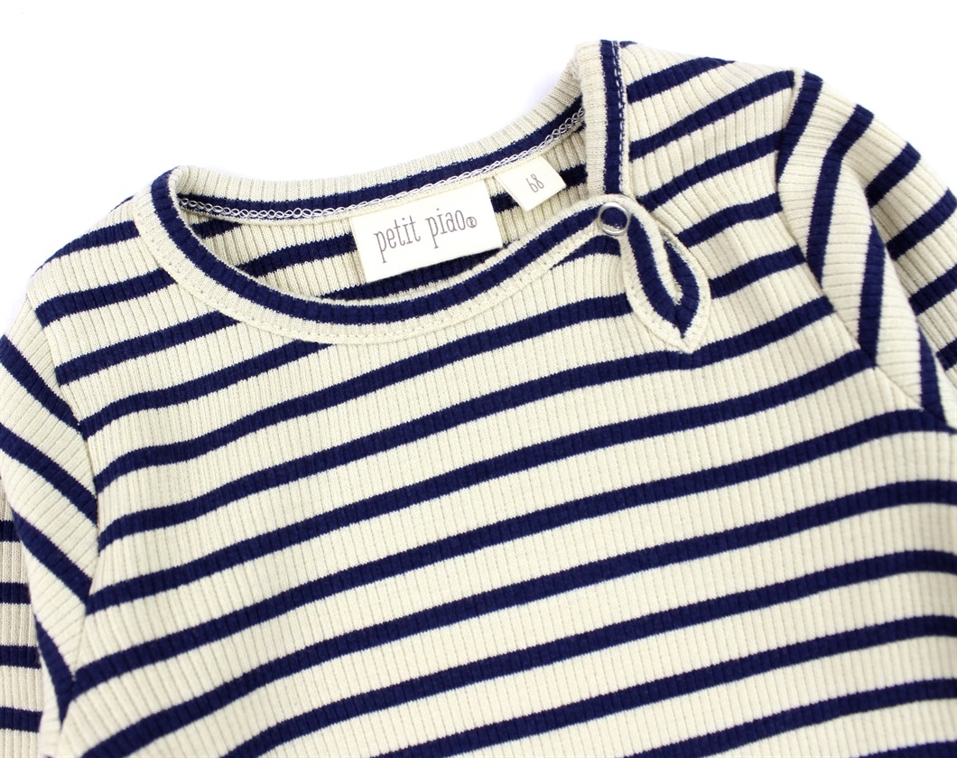 Stribet langærmet body i farverne dark off white og indigo plum fra Petit Piao.
