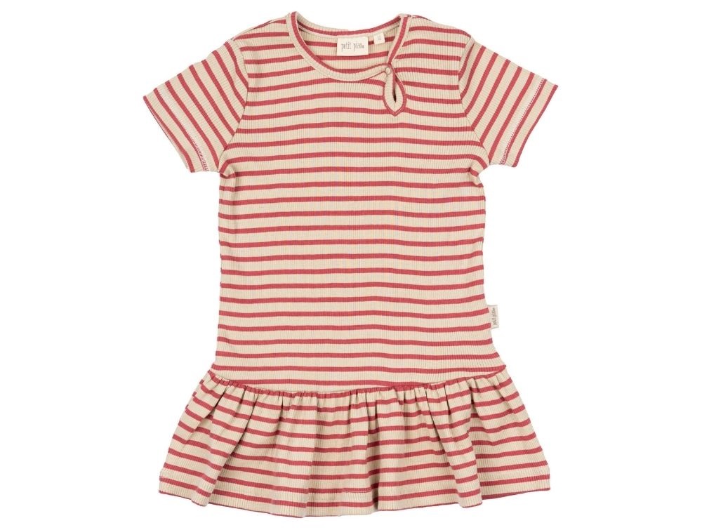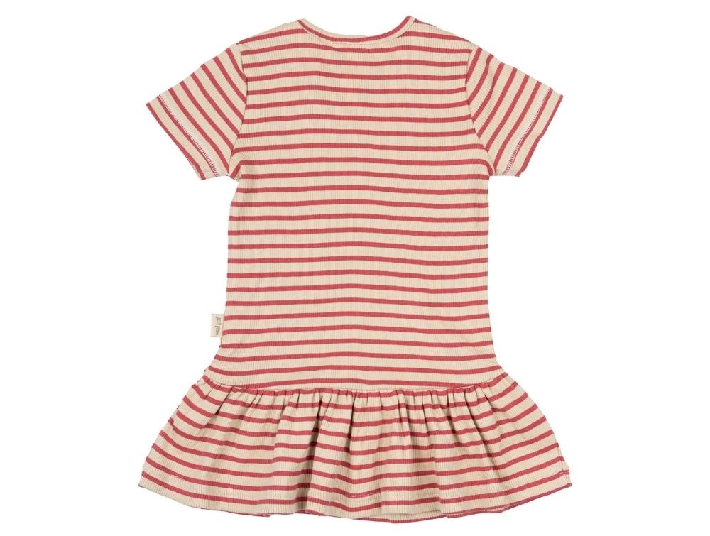 Stribet kortærmet kjole i farverne lys berry (light berry) og mørk råhvid (dark off white) fra Petit Piao.