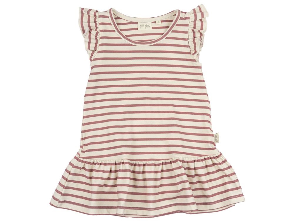 Kjole i råhvid med mørk rosa (withered rose) striber fra Petit Piao.