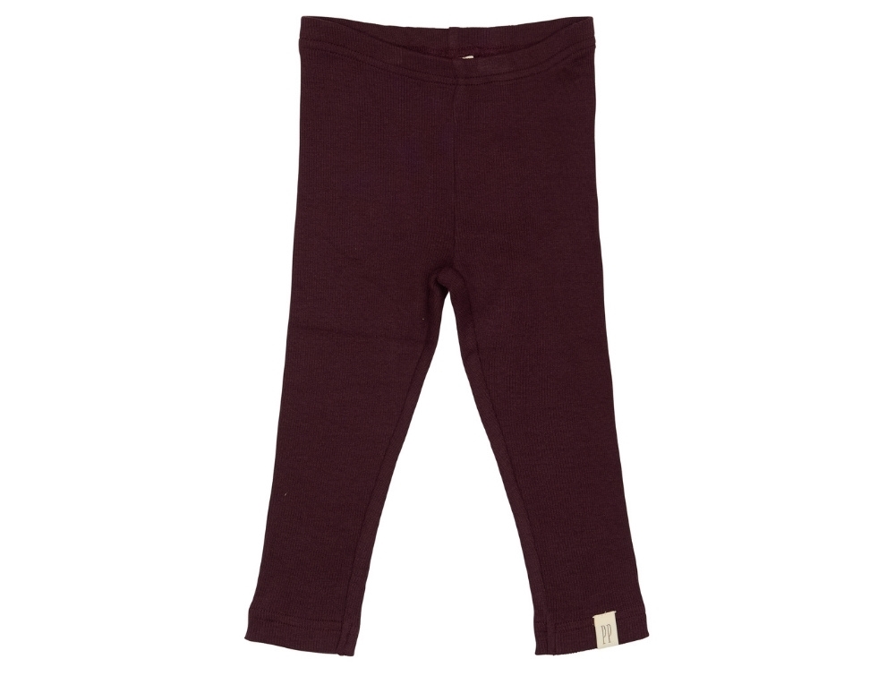 Leggings i mørkelilla nuance (dark grape) fra Petit Piao. Klassisk ribkvalitet og tætsiddende pasform med elastik i taljen.