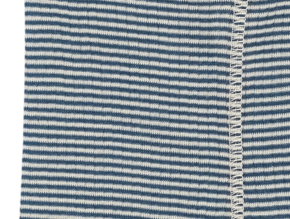 Leggings med blå striber fra Petit Piao, lavet i blød merinould med smalle striber.