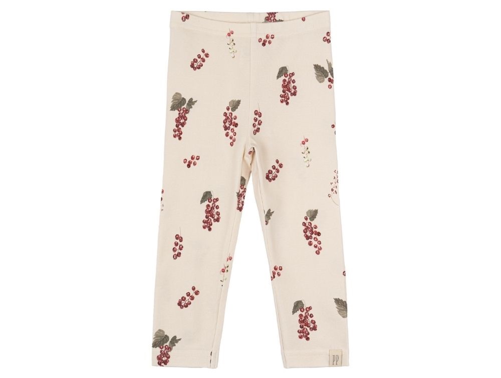 Leggings fra Petit Piao i råhvid med et smukt akvarelprint af røde sommer ribs. Printet er inspireret af den danske natur og giver et charmerende udtryk. Leggingsene har elastik i taljen og en tætsiddende pasform.