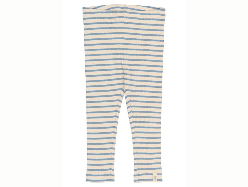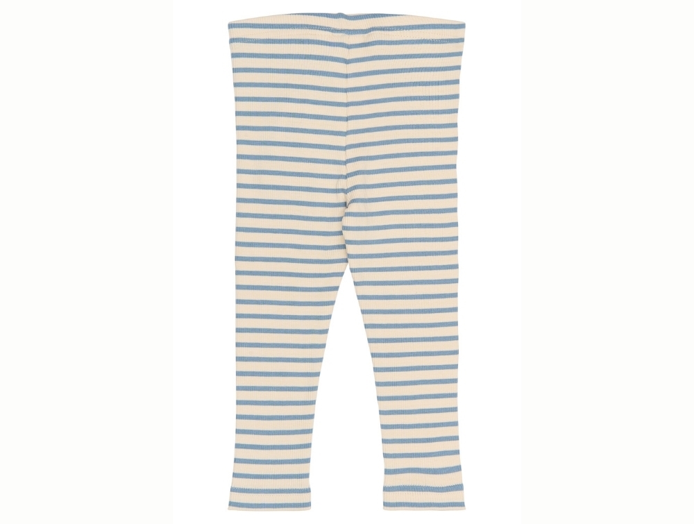 Leggings i råhvid nuance fra Petit Piao med klassiske blå striber (Infinity Striped) i en blød ribkvalitet.