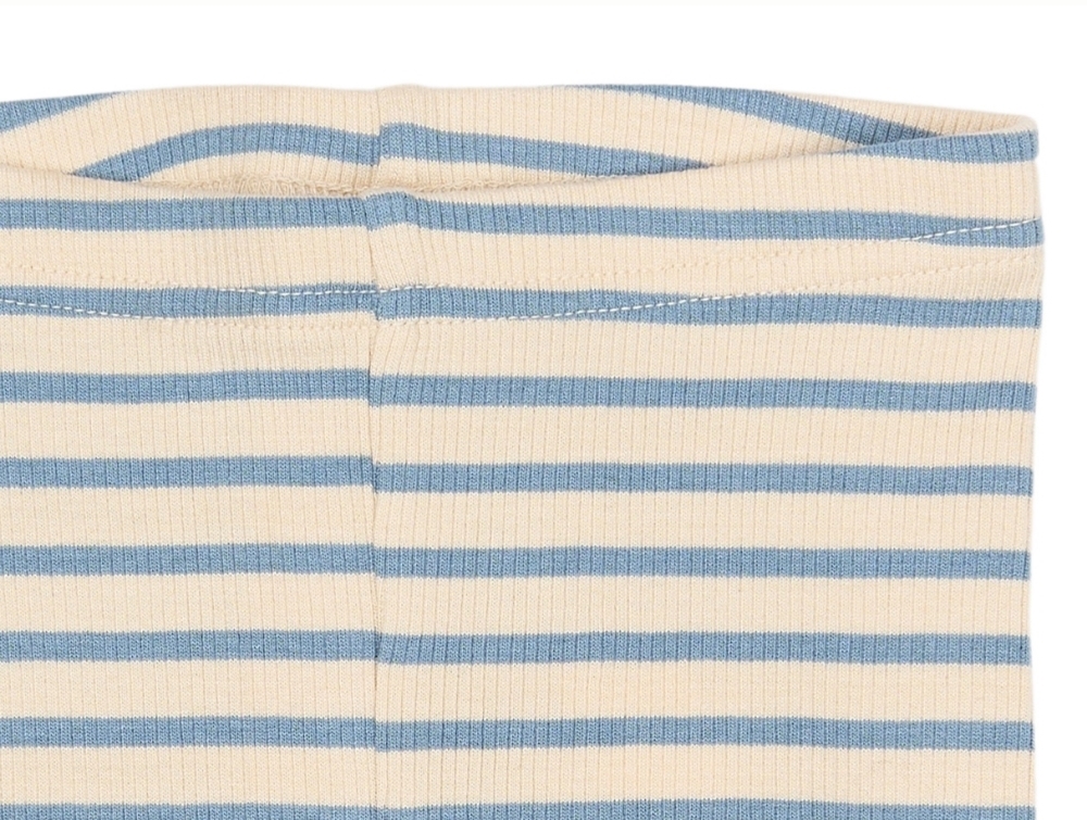 Petit Piao leggings i råhvid med blå striber og strækbar ribkvalitet