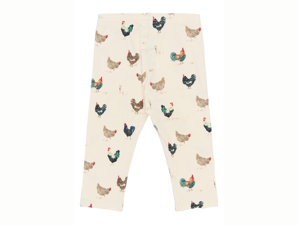Leggings i råhvid nuance (Eggnog Rooster) fra Petit Piao med et smukt akvarelprint af haner og høns.