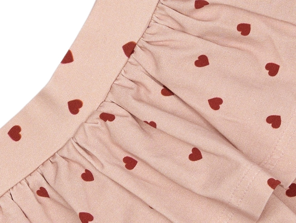 Petit Piao nederdel rosa med røde hjerter print set forfraPetit Piao nederdel rosa med røde hjerter print set bagfraPetit Piao nederdel rosa med røde hjerter set tæt på print og linning