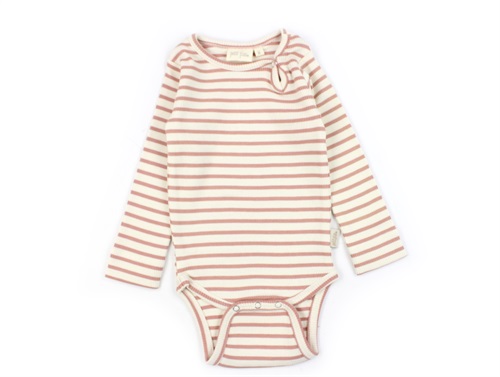 Stribet langærmet body i farven sea shell pink fra Petit Piao.