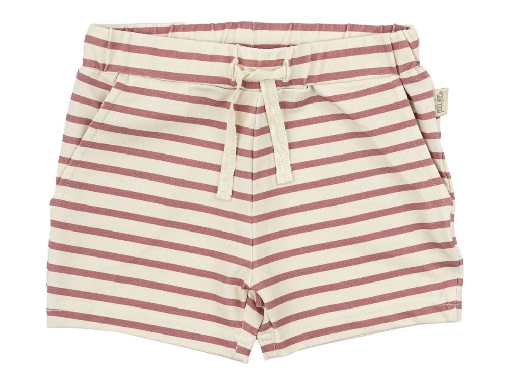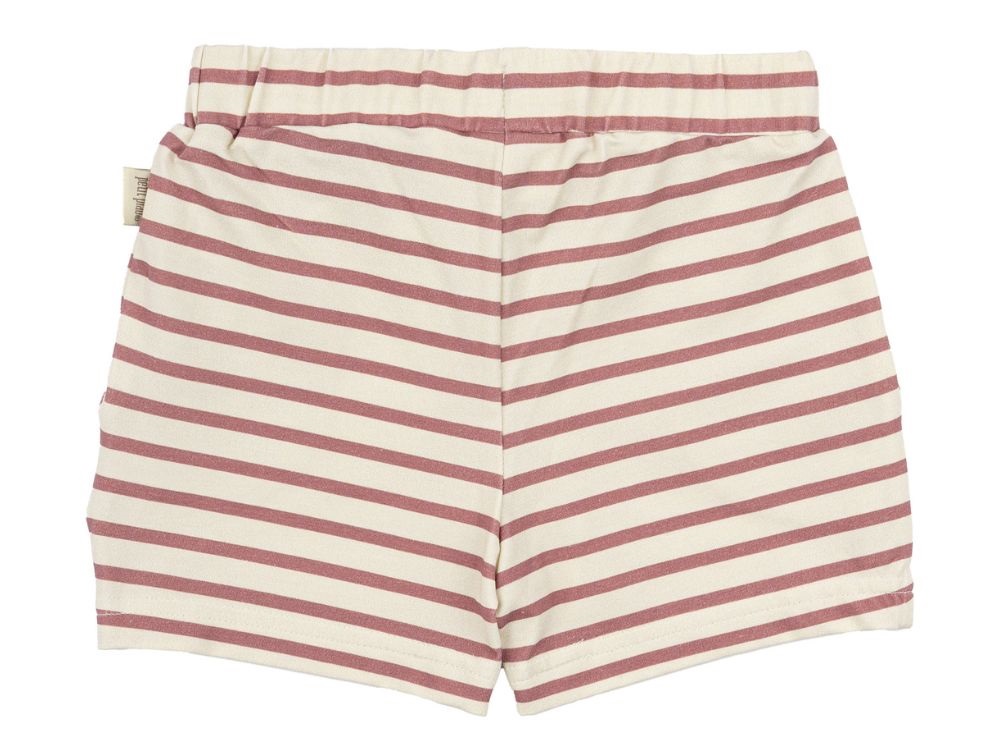 Shorts i råhvid med mørk rosa (withered rose) striber fra Petit Piao.