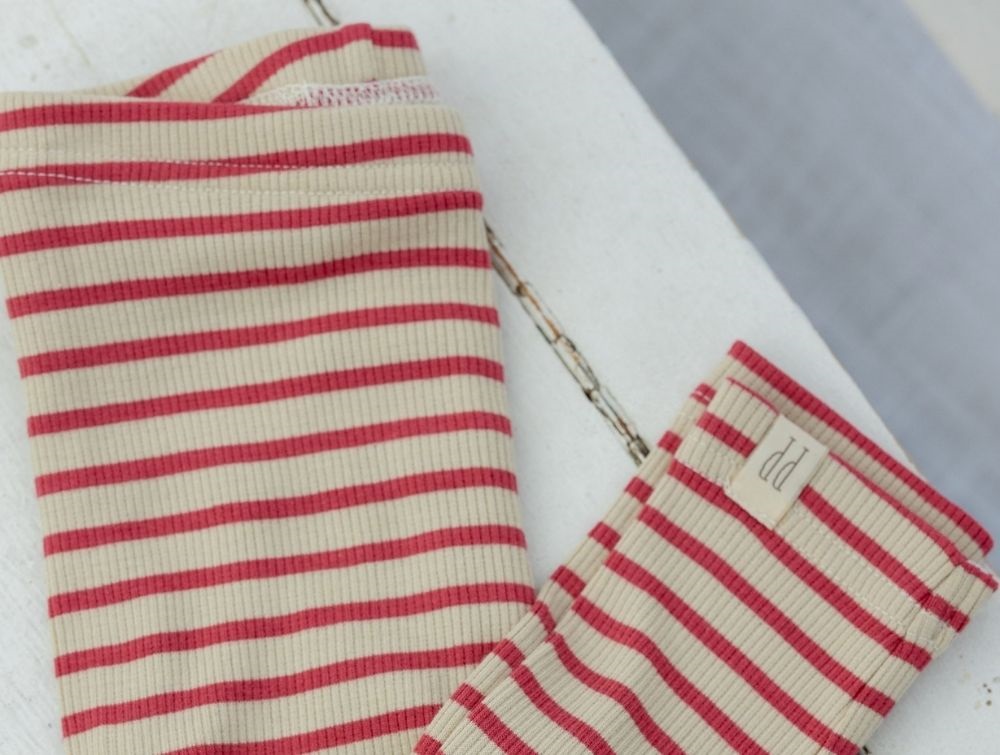 Bløde leggings fra Petit Piao i et klassisk stribemønster i råhvid og en skøn rød nuance, der giver et enkelt og stilfuldt udtryk. Den cremefarvede baggrund sikrer, at striberne bevarer deres klassiske udseende.