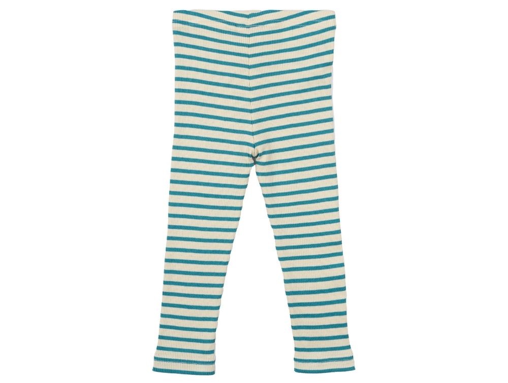 Stribet leggings i farverne turkis (turquoise) og mørk råhvid (dark off white) fra Petit Piao.