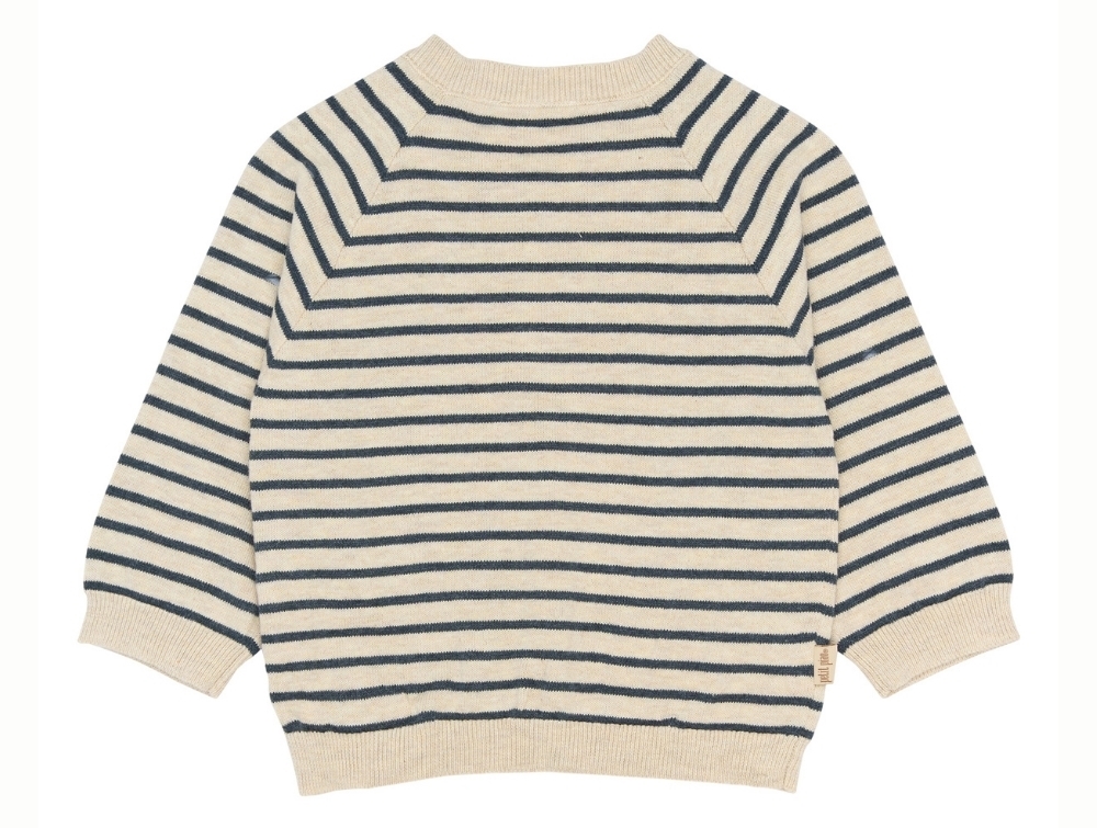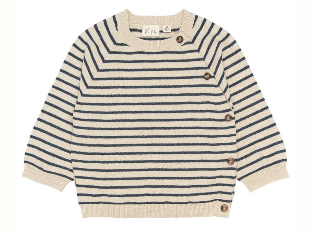 Petit Piao striktrøje med dark denim striber og knapper i siden
