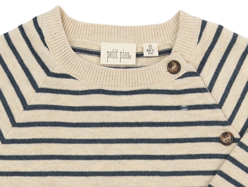 Petit Piao striktrøje i råhvid nuance med striber og sideknapper