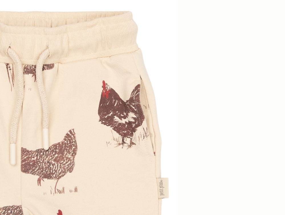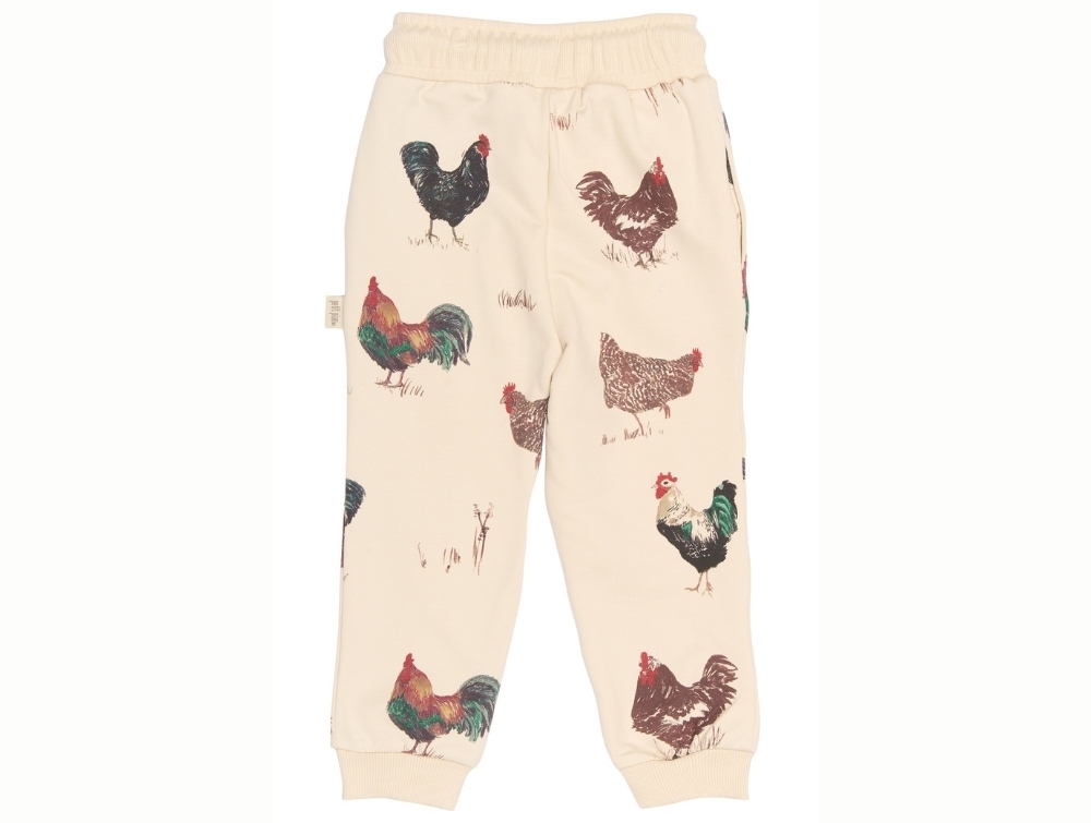 Petit Piao sweatpants i råhvid med haneprint i GOTS-certificeret bomuld
