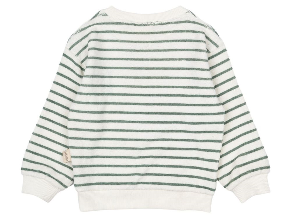 Sweatshirt i farven råhvid (off white) med grønne (green) striber fra Petit Piao.
