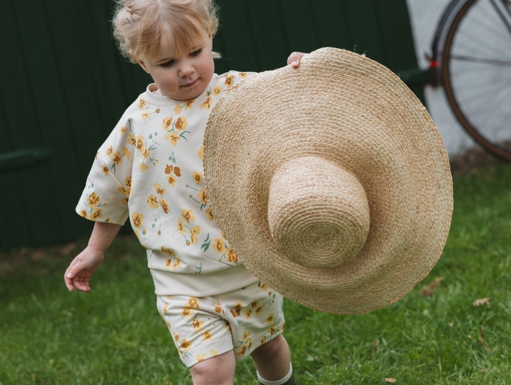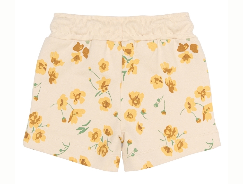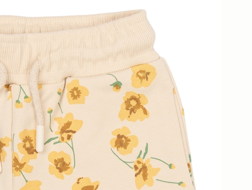 Petit Piao sweatshorts råhvid med gult blomsterprint forfraPetit Piao sweatshorts råhvid med blomsterprint på barnPetit Piao sweatshorts råhvid med blomsterprint detaljePetit Piao sweatshorts råhvid med buttercup print bagfra