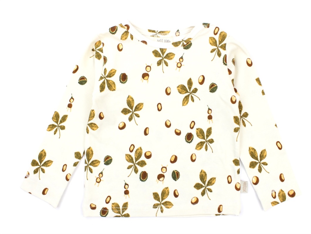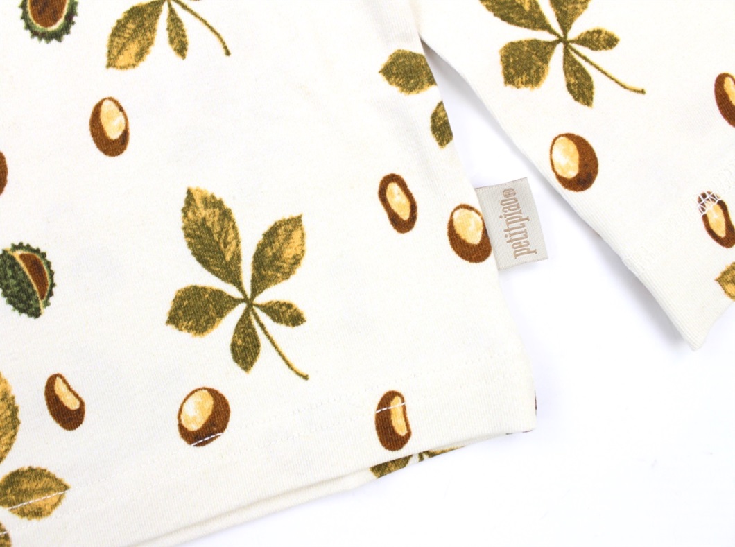 Langærmet t-shirt i off-white med kastanjeprint fra Petit Piao.