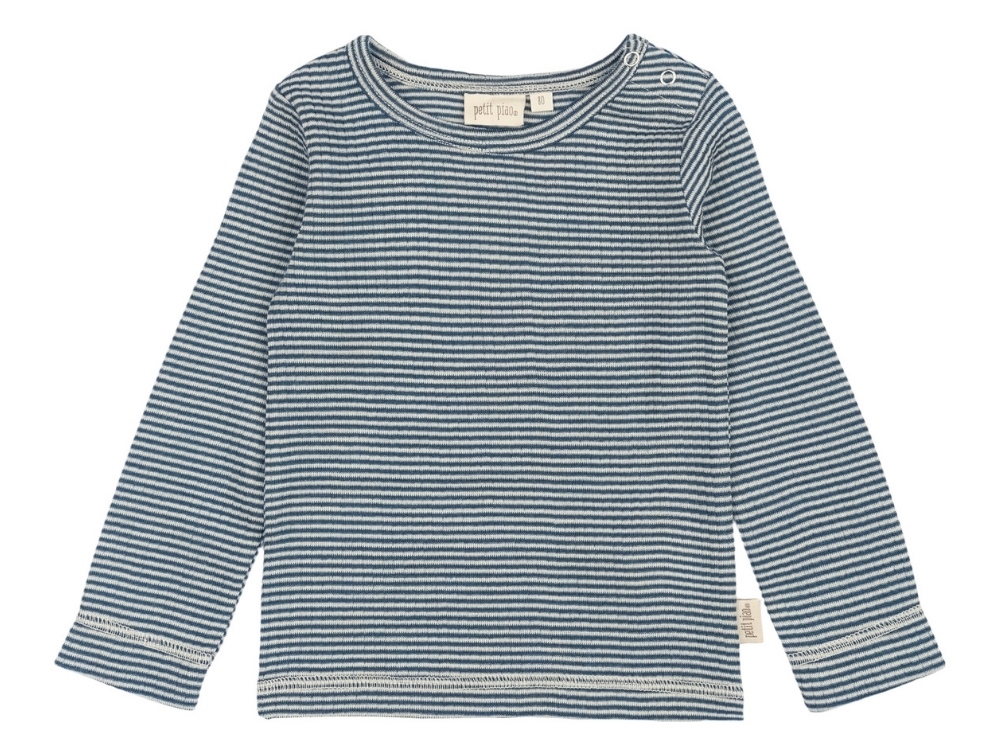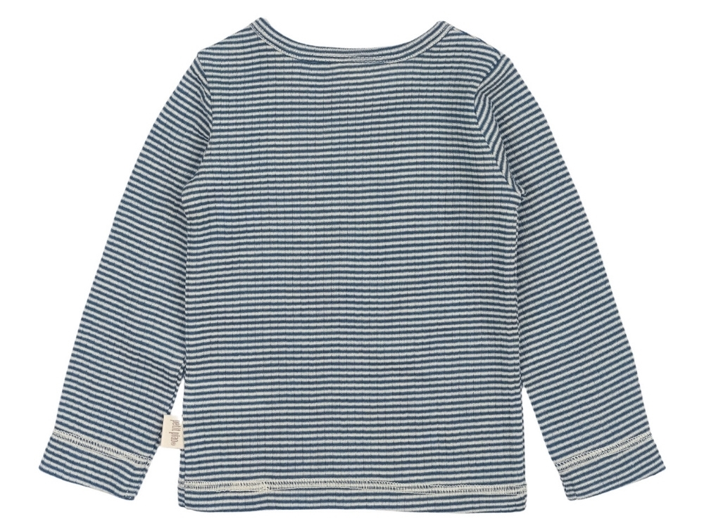Langærmet t-shirt med blå striber fra Petit Piao.