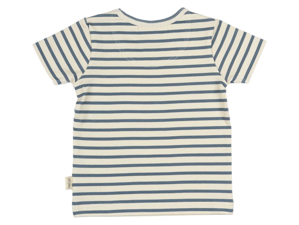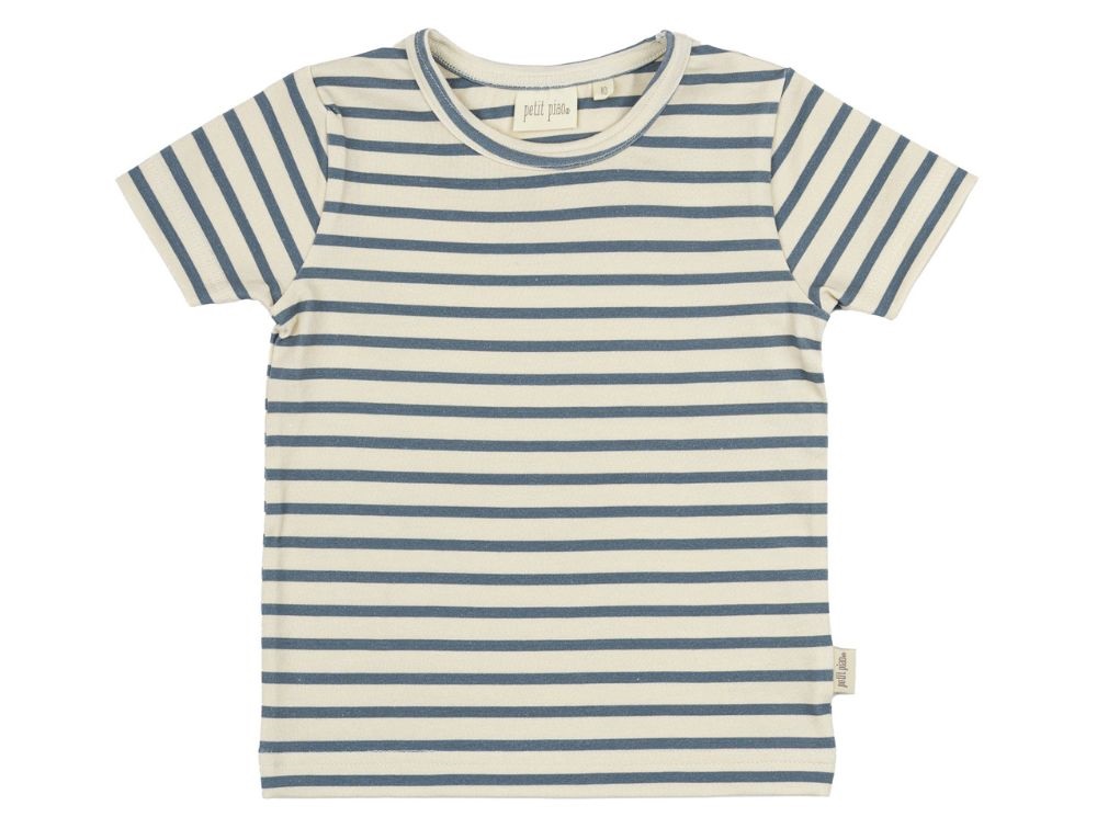 T-shirt i råhvid med blå mirage (blue mirage) striber fra Petit Piao.