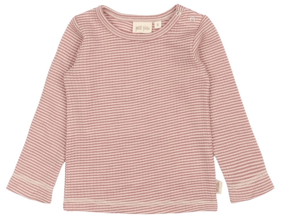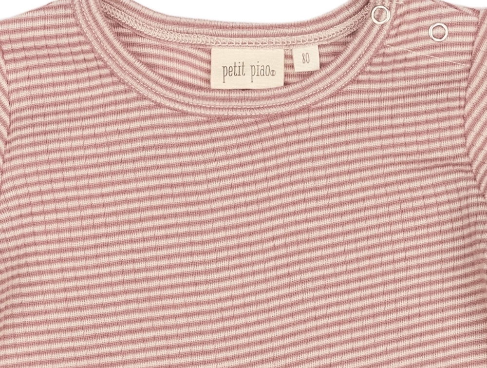 Petit Piao t-shirt i nostalgic rose striber med trykknap og merinould