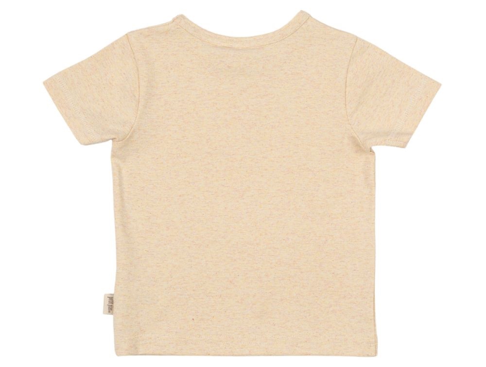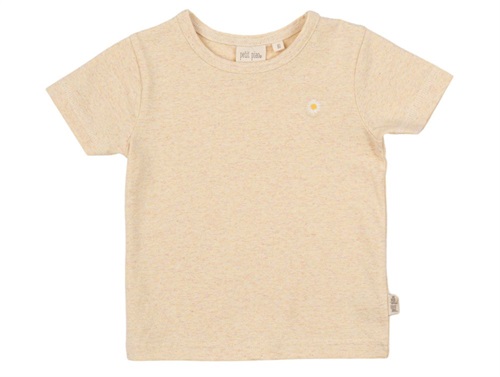 Sød kortærmet t-shirt fra Petit Piao i en råhvid meleret nuance med en fin broderet tusindfryd på brystet. T-shirten er lavet i et blødt og strækbart materiale, der sikrer komfort og bevægelsesfrihed.