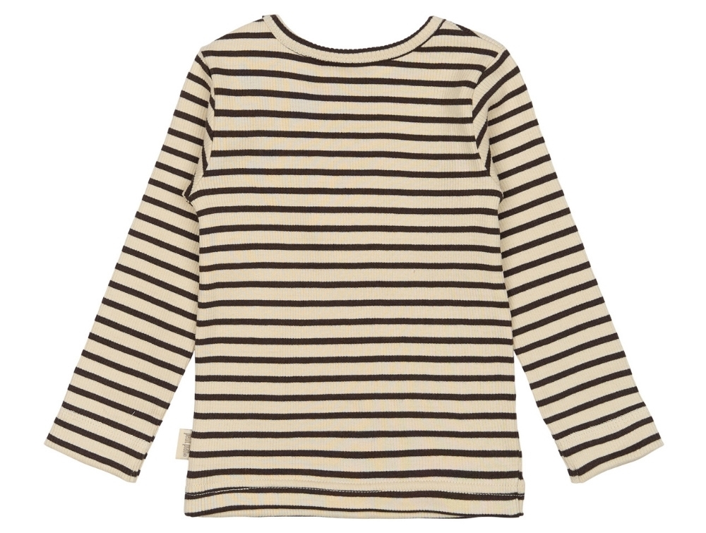 Langærmet t-shirt i coffee bean striber fra Petit Piao.