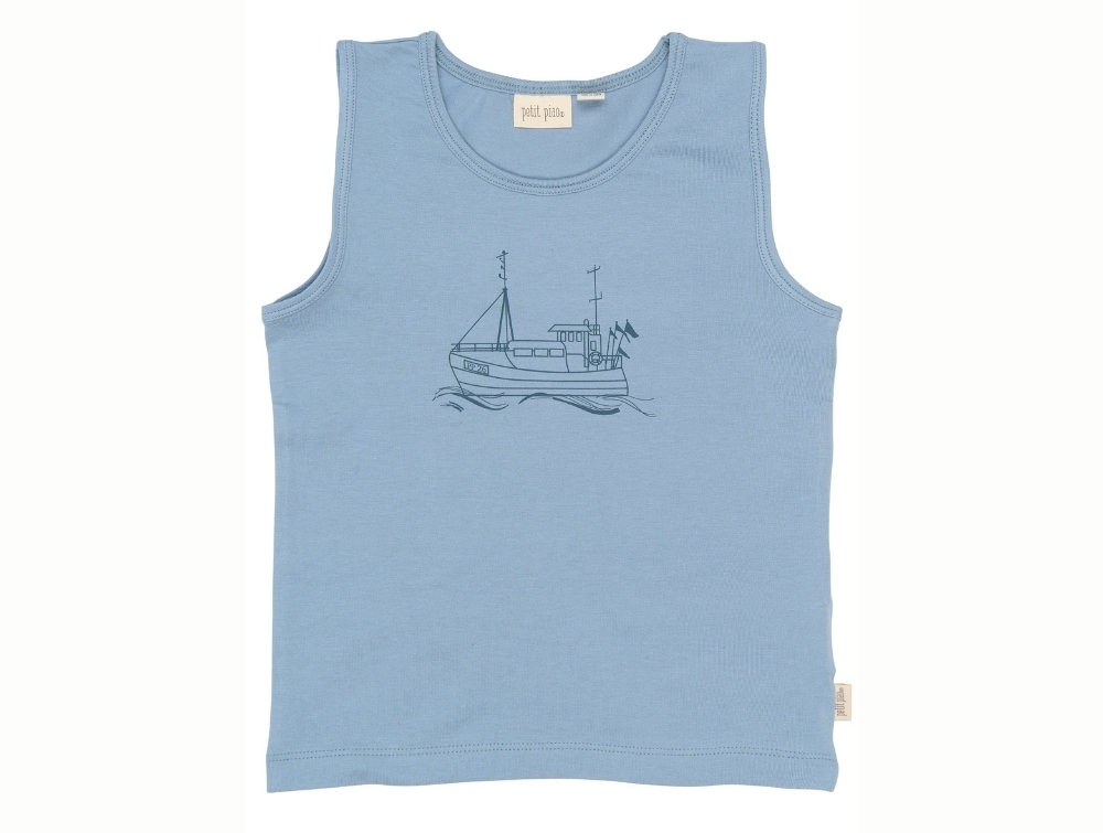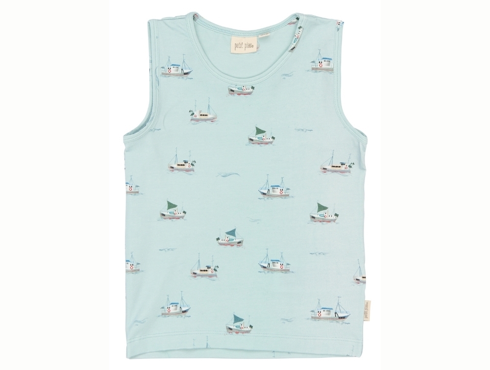Petit Piao undertrøjer 2-pack lyseblå med bådePetit Piao undertrøje lyseblå bådprint forfraPetit Piao undertrøje blå med bådmotiv