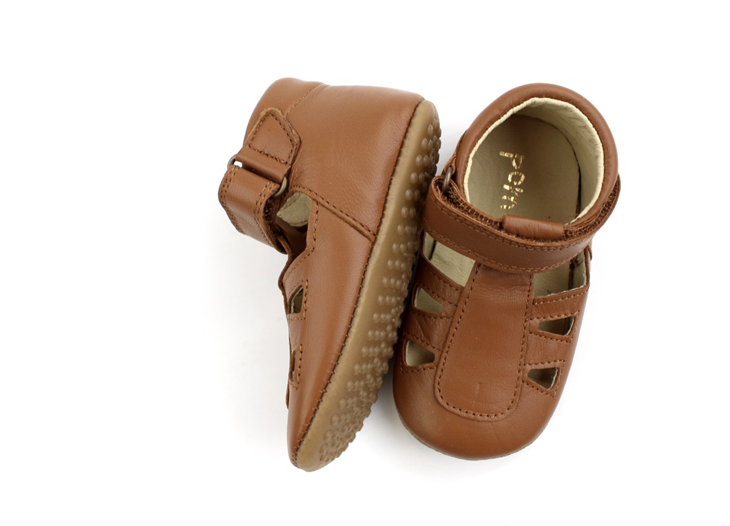 Camelfarvede skindhjemmesko med lufthuller fra Pom Pom.