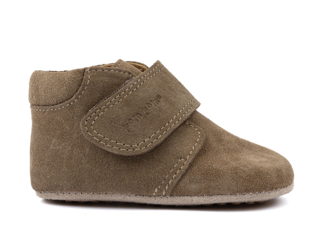 Pom Pom hjemmesko khaki med velcro og ruskind