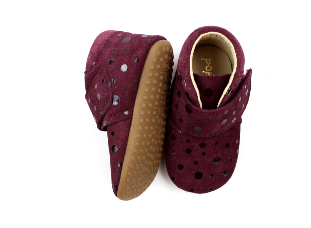 Ruskindshjemmesko i farven dark vino med prikker fra Pom Pom.