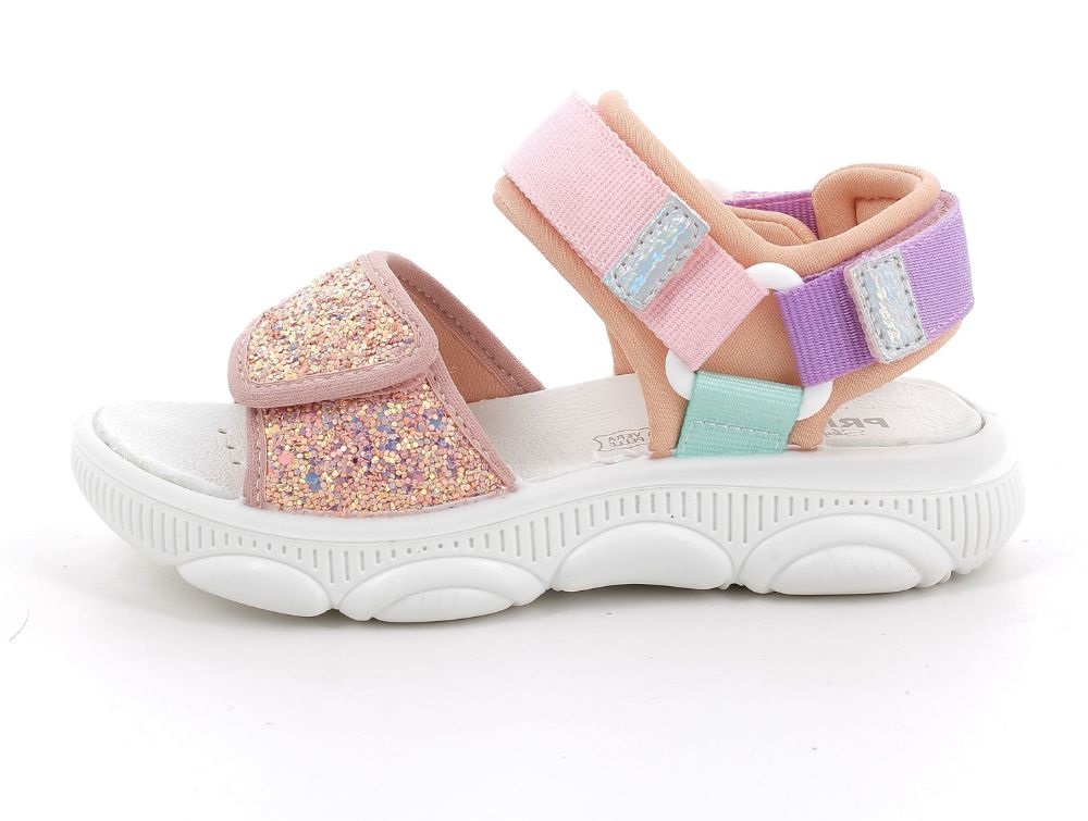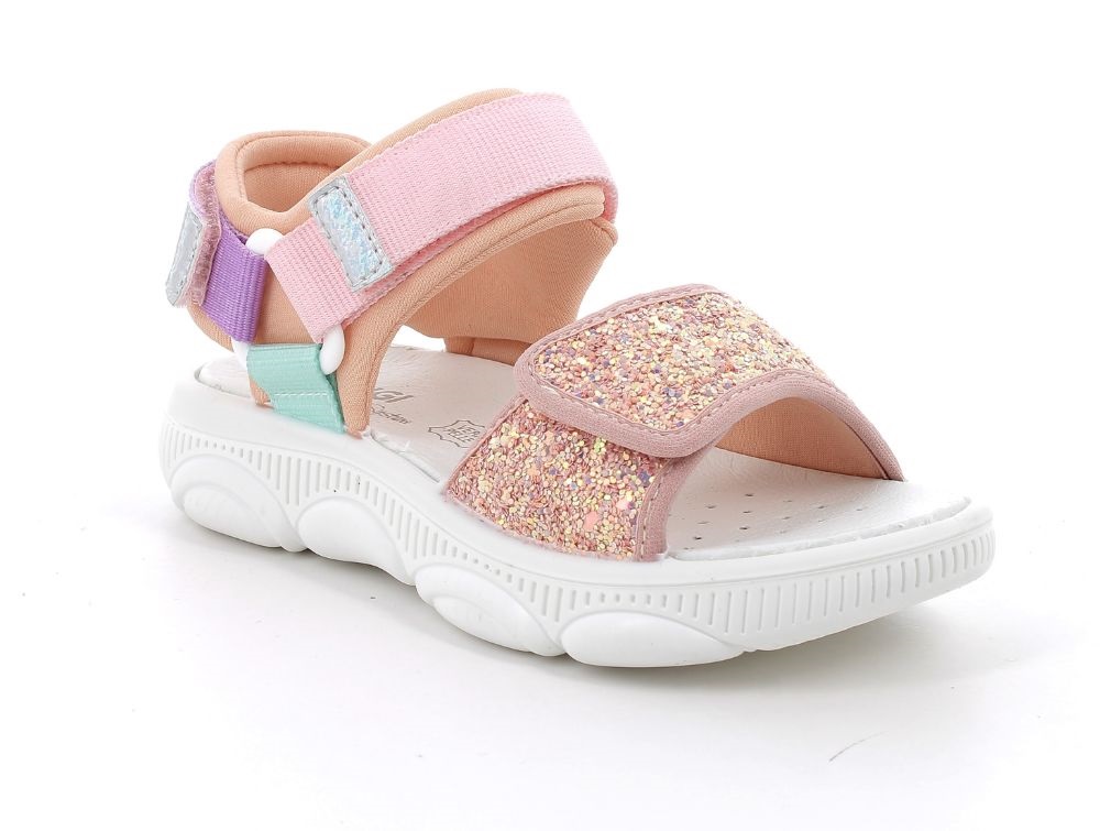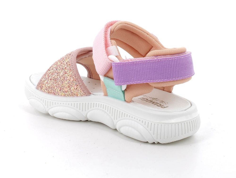 Let sandal i en rosa, lilla og turkise nuancer med glimmer fra Primigi.