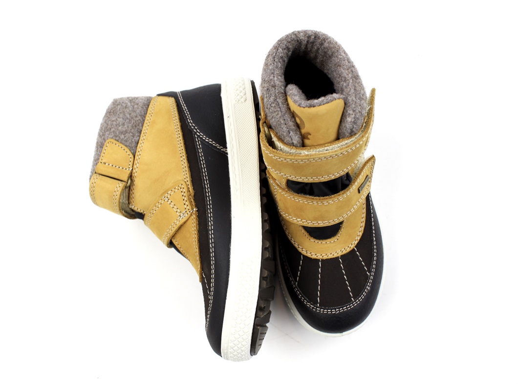 Sennepsgule/sorte vinterstøvler fra Primigi med velcro. Støvlen er meget let og er rigtig velegnet til aktive børn.