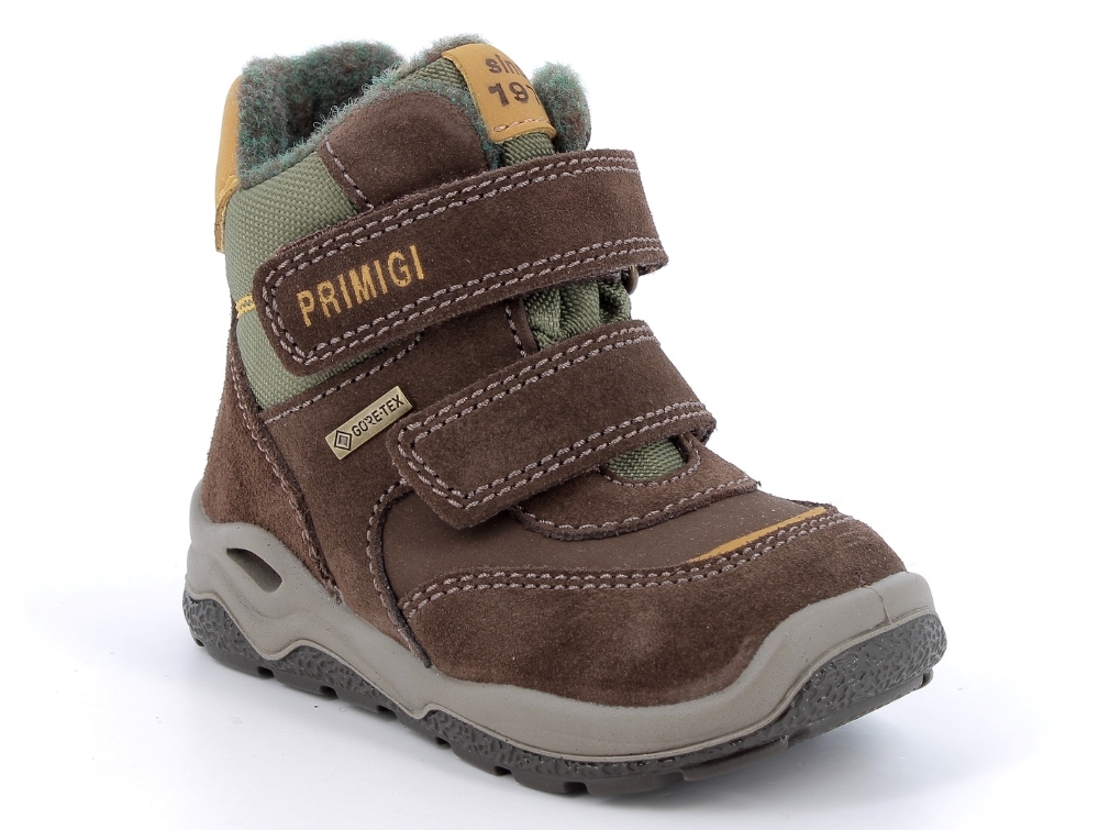 Primigi børnestøvle i ruskind og tekstil med GORE-TEXPrimigi vinterstøvle brun og oliven med velcroPrimigi børnesko med ergonomisk pasform og GORE-TEX