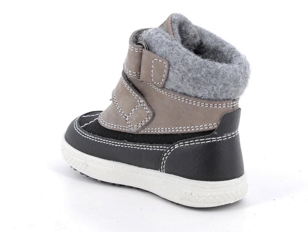Vinterstøvle i grå nuance og sort fra Primigi. Inspireret af outdoor-looket, men tilpasset de mindste. Modellen har to velcroremme, der gør den nem at tage af og på, og en gummiforstærket underdel, der beskytter mod vand og mudder. Støvlen er let i vægten og har en ergonomisk form, som støtter foden uden at begrænse bevægelsen.