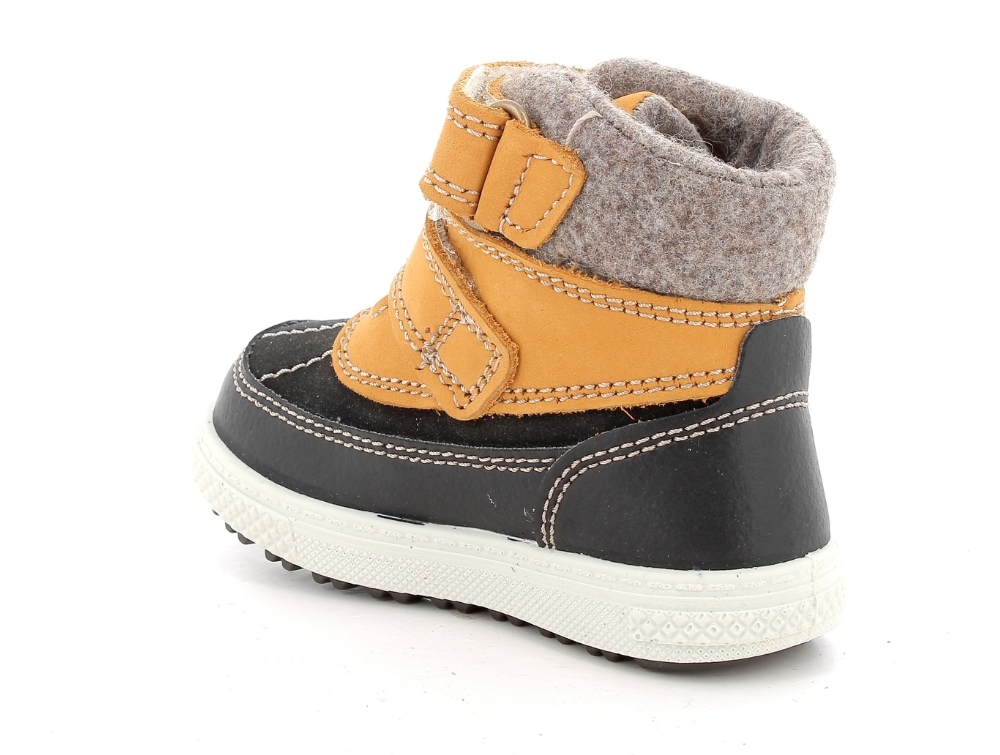 Vinterstøvle i gul og sort fra Primigi. Inspireret af outdoor-looket, men tilpasset de mindste. Modellen har to velcroremme, der gør den nem at tage af og på, og en gummiforstærket underdel, der beskytter mod vand og mudder. Støvlen er let i vægten og har en ergonomisk form, som støtter foden uden at begrænse bevægelsen.