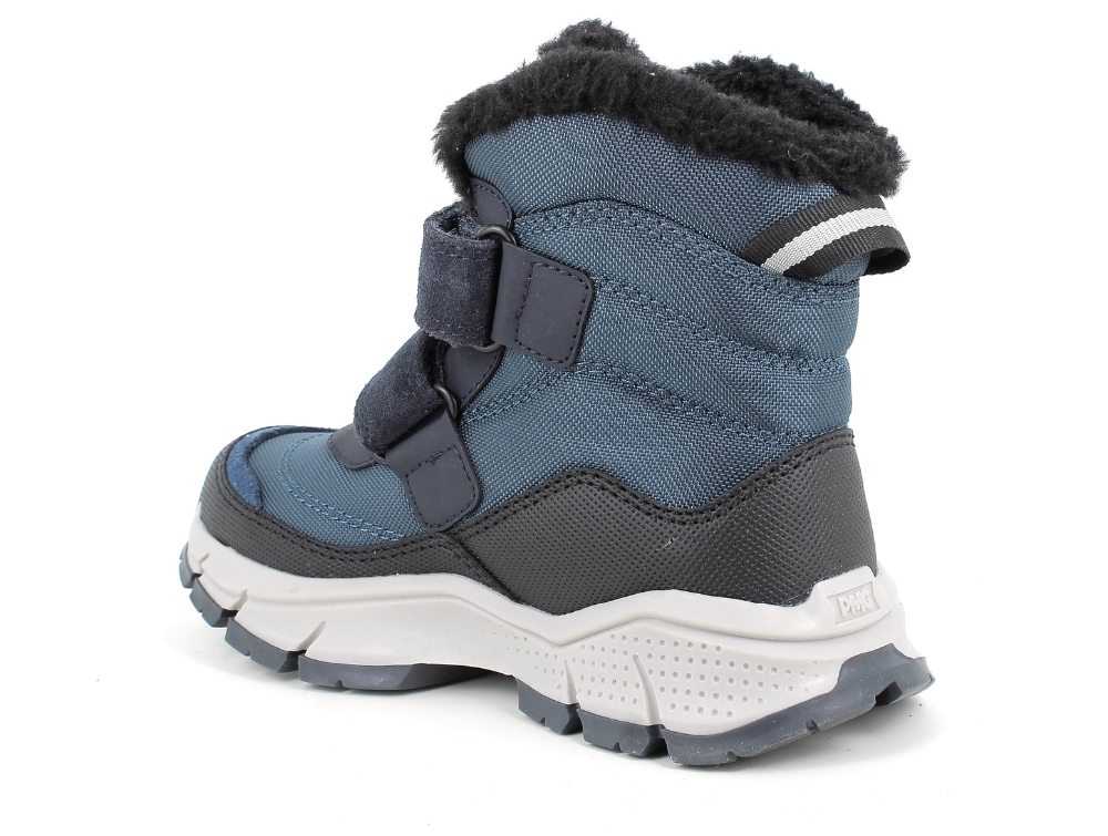 Vinterstøvle i navy fra Primigi med praktisk design og solid konstruktion. Støvlen har to brede velcroremme, som gør den nem at tage af og på, og det mellemhøje skaft giver ekstra varme om anklen.