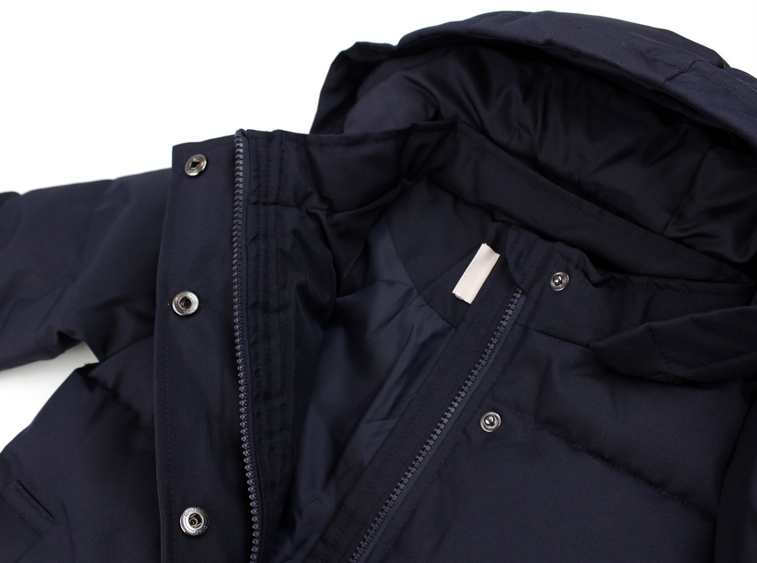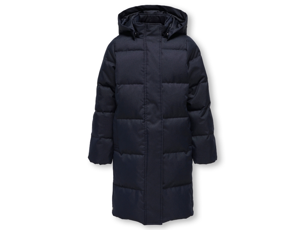 Denne lange puffer vinterfrakke i mørkeblå (night sky) er designet til efterårs- og vinterbrug.