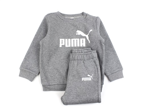 Sweatsæt med bluse og bukser i farven medium gray heather og hvidt logo fra Puma.