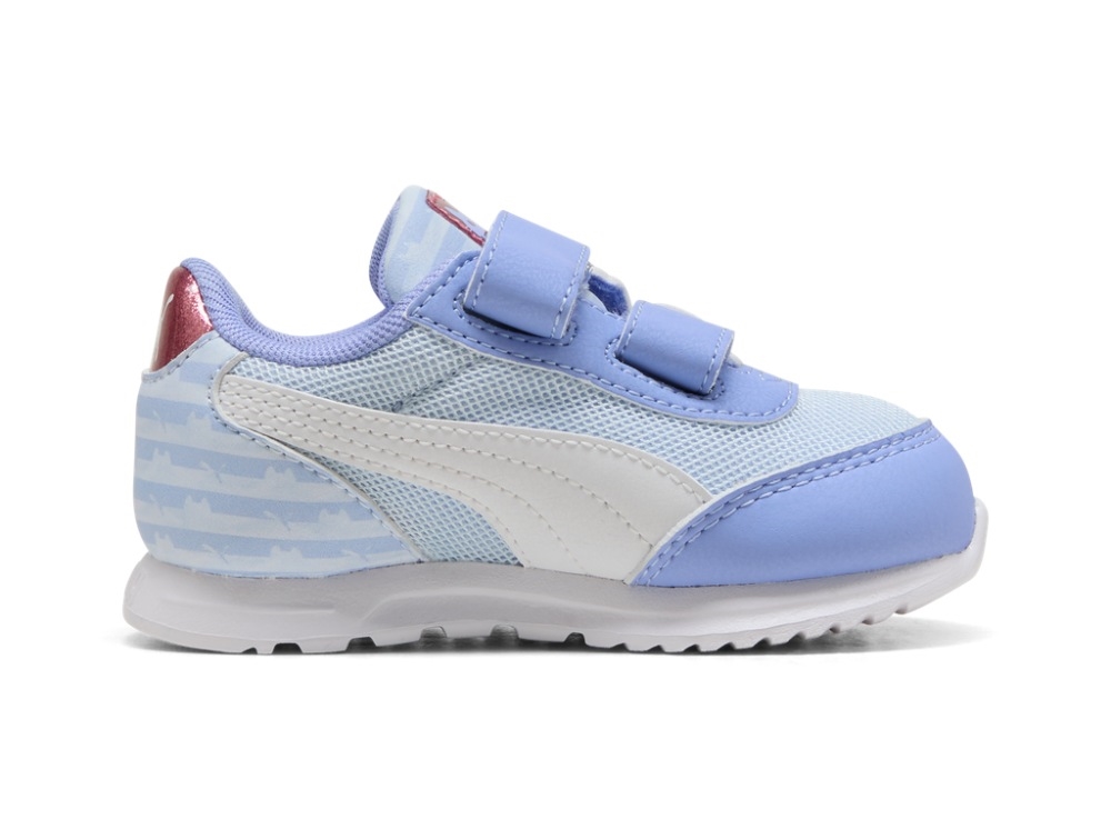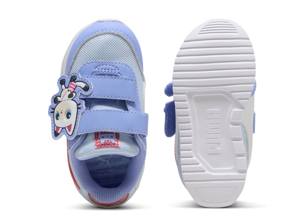 Sneaker i en lys lilla nuance fra Puma med motiv fra Gabby's Dollhouse. R78 Lightwind er lavet i tekstil og syntetisk materiale og har en let konstruktion, der gør modellen velegnet til børn. Skoen har velcrostrop og en fleksibel sål.