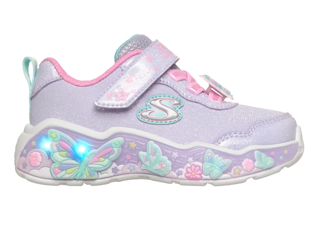 Skechers Lil Butterfly Bliss sneaker lilla med sommerfugle og lys