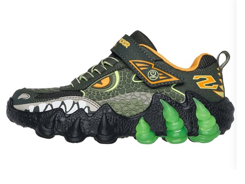 Skechers sneaker sort/grøn dinosaurus med blinklys